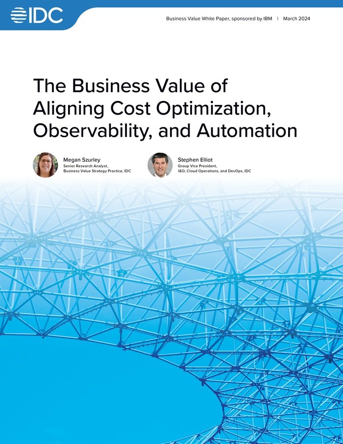IDC found that organizations can uncover real value when they combine application performance monitoring (APM) and hybrid cloud cost optimization tools. Learn how this combo AI-powered approach helped organizations reduce the cost of cloud spend and increase productivity, experience 42% fewer unplanned outages annually and realize a three-year ROI of 419%.